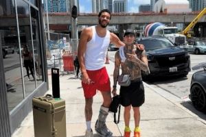 早日康复🙏塔图姆街边与球迷合照 左脚仍穿厚重保护靴