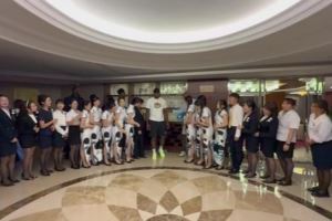 头套卡!莱昂纳德和酒店工作人员羞涩合影
