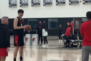 上场爆发后整个人松弛感拉满~小吧探班开拓者训练 杨瀚森加练罚球