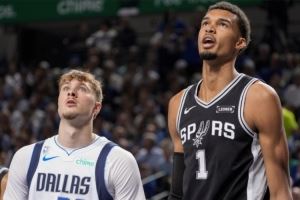 最后说一个现象。联盟双塔在变多。昨天的火箭雷霆不用说,今天看到马刺同时摆出文班+科内特,立刻觉得亚当斯+申京的内线组合有点矮了。独行侠、爵士的首发高度跟火箭比都不逊色——昨天还说,“这没见过,真没见过”,第二天就又见到了。