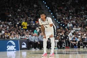 马刺球员卡斯尔上半场打得不错,攻防两端都相当有冲击力。