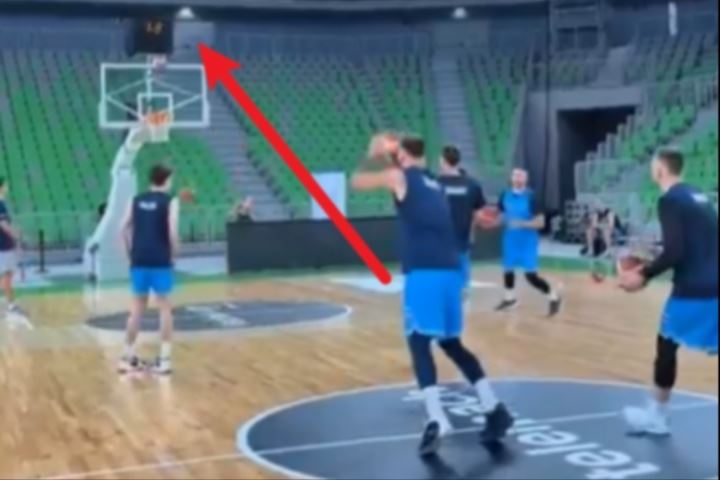 一个月不打球手感还在!东契奇赛前热身中圈三分“压哨”命中🎯