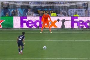 而热刺前锋特尔的罚点用时9.19秒,最终也偏出了球门。