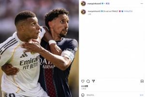 巴黎队长马尔基尼奥斯社媒晒与姆巴佩对位照:晋级决赛