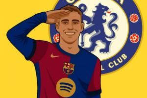 费尔明现年22岁,他与巴萨的合同于2029年到期,德转身价5000万欧。