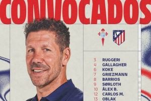 马竞对塞尔塔名单:阿尔瓦雷斯、格列兹曼领衔,穆索身体不适缺席