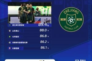 中超第18轮传球成功率榜:浙江队最高,泰山第二、国安第三