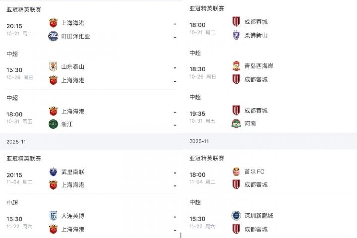 海港打泰山浙江英博 蓉城打西海岸河南深圳 申花打英博深圳津门虎